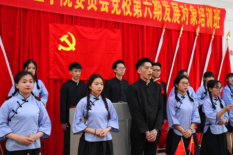 5月11日下午,由学校党校主办,旅游管理学院党支部承办党校第六期发展对象培训班结业典礼暨红色诗歌朗诵比赛在清远校区101课室隆重举行。学校党委副书记、党校副校长郭记中教授,党校秘书长、学生党总支书记常立威,建筑与艺术设计学院党总支书记袁龙如,外语外贸学院党总支书记夏建兵,信息工程与商务管理学院党总支副书记凌红,财务金融学院党总支副书记赵玲霞,学生工作处副处长兼建筑与艺术设计学院党总支副书记胡娟,旅游管理学院党支部书记胡家夏,以及各党(总)支部老师出席了会议。151名培训班学员全体参加了典礼。旅游管理学院党支部组织委员马佩佩同志主持大会
