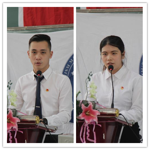 图四:团总支副书记余梓霖、学生会主席邬晓盈作工作报告