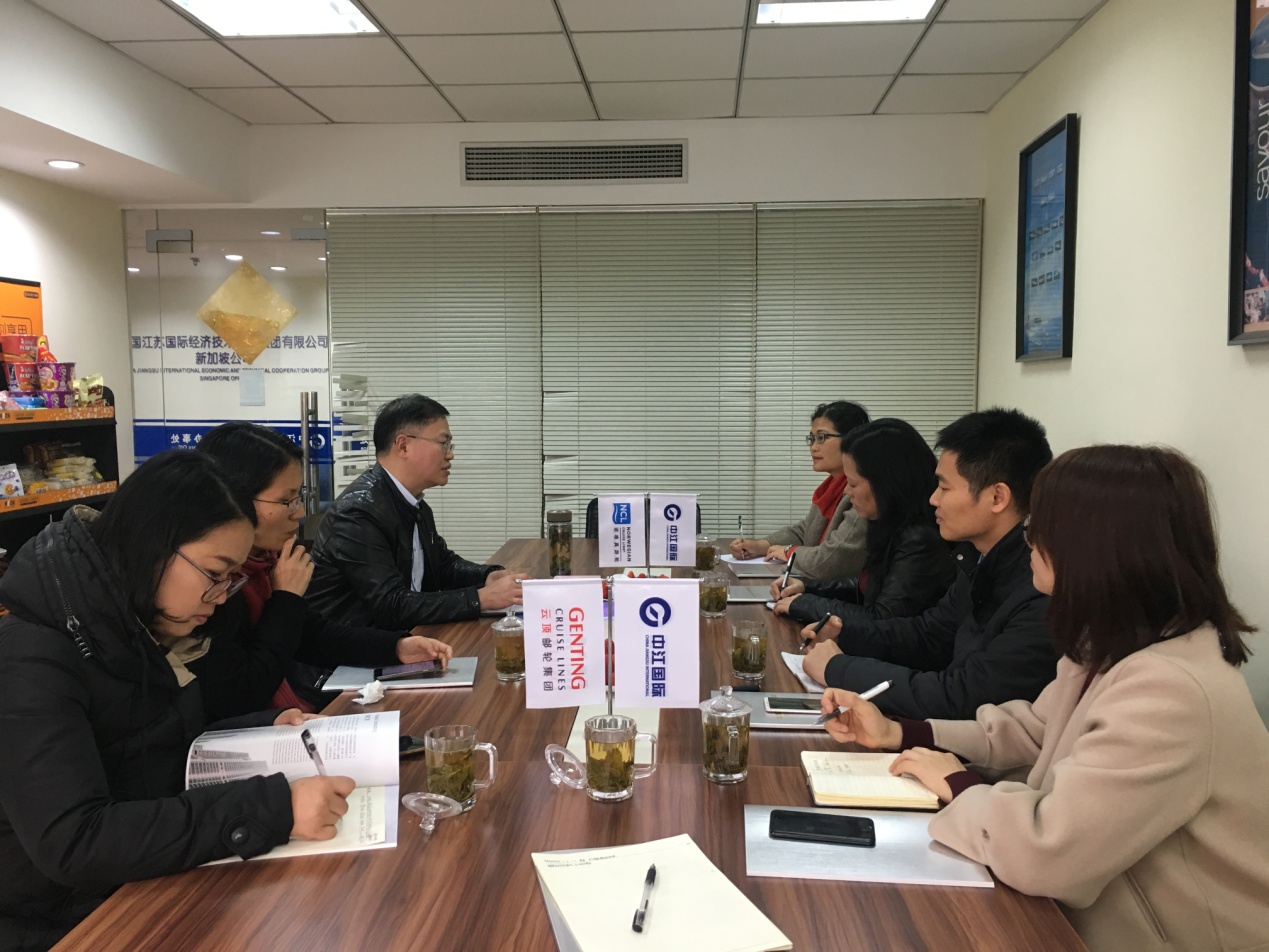 图一 与中国江苏国际经济技术合作集团有限公司调研国际邮轮发展
