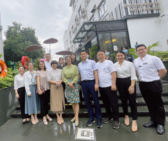为贯彻落实学校关于毕业生就业工作的决策部署,积极应对疫情对毕业生就业的冲击,全面深化校企合作、供需对接,全力促进2022届毕业生更加充分和更高质量就业,2022年6月9日,文化旅游学院副院长谭金凤、梁滔滔、酒店管理系主任陈丽芳、辅导员熊汝鑫前往东莞市伯顿饮食服务有限公司(以下简称“伯顿”)开展就业拓岗洽谈。伯顿合伙人兼人力行政总监陈国凤、副总经理郭财山、行政总厨黄宗亮、营运经理叶雪芬、营运部楼面经理符翼、人事经理黄丽梅接待了我校老师一行。