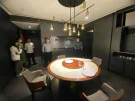 陈堪江带领参观了餐厅,内部装修采用黑灰色系,昏暗的灯光下营造出了神秘之感,令人忍不住去探索个中奥秘。餐厅主打的是新派粤菜,新派厨师运用现代的烹饪手法和混搭方式,重新演绎了粤菜之美,带给食客全新的味觉体验,呈现粤菜的创新特色。