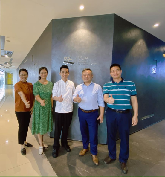 为贯彻落实学校关于毕业生就业工作的决策部署,进一步开拓更多就业创业岗位和机会,2022年4月29日,文化旅游学院南华珠江学者潘家佳、副院长谭金凤、梁滔滔、酒店管理系主任陈丽芳前往获“米其林餐盘”称号、2021年黑珍珠餐厅二钻级别的跃·Yuè现代粤菜料理餐厅开展调研。人力资源部总监彭蕴、行政副总厨陈堪江接待了我校老师一行。