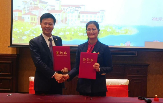参观结束后,在酒店会议厅举行校企合作签约仪式。首先由酒店房务部前厅经理纳娜从酒店的建筑、设施设备等方面立体化呈现、剖析酒店。随后,酒店总经理宋玉亮介绍了酒店的服务理念、管理理念,表达了对校企合作育人理念的认同与支持。接着,谭金凤副院长发言,表示像美林湖这样优秀的酒店非常值得参观学习,产教融合、协同育人一定是职业院校培养人才的最优路径,与美林湖酒店的合作为文化旅游学院学子的发展增加了一个更好的平台。随后进入问答环节,同学们积极运用酒店管理专业理论所学,纷纷提出了管理理念、服务理念、公司政策、人才培养措施、公司福利待遇、管理专业术语等酒店相关问题,得到了总经理宋玉亮团队的细心、耐心解答,既有专业的严谨,又有沟通的轻松活泼。整个交流环节体现了我校学生优秀的专业素养和扎实的专业理论,虚心好学的精神得到了酒店高层的高度赞扬。最后,校企双方在和谐融洽的气氛中进行了校企合作签约和揭牌仪式。文化旅游学院和美林湖温泉大酒店校企合作交流活动完美地落下了帷幕。