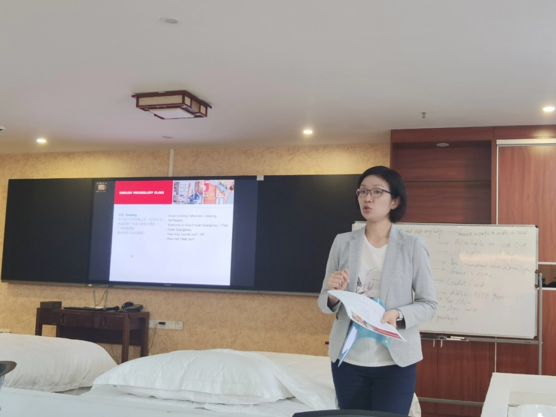 2020年10月30日,广州凯悦酒店集团的现代学徒制导师——君悦酒店人力资源部副理陈燕和房务部服务教练陈炬冉,在我校清远校区餐饮实训室、前厅实训室为2019级酒店管理专业君悦、柏悦现代学徒制班11名学徒授课。