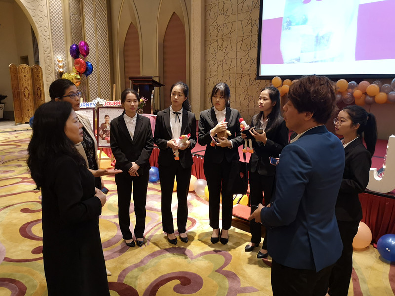最后,酒店安排师生享用精美茶歇,并按专业将学生分成两支队伍,布置专门的酒店管理人员带领,对酒店的宴会厅、客房、餐厅等进行参观学习。通过酒店方的讲解,同学们表现出对酒店的浓厚兴趣与由衷赞叹,加深了对酒店文化特色及风格等的认识与了解,为日后的实习路径选择提供了方向,为成为高层次的酒店行业人才奠定了基础。