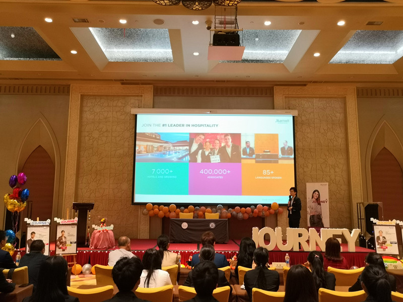仪式第一项议程,由关一鸣总监作万豪国际集团及酒店介绍。万豪于2015年11月收购喜达屋,成为全球最大酒店集团。恰逢仪式举办的前一天,万豪第7000家酒店——香港瑞吉酒店开业。万豪的一路辉煌离不开其将以人为本视为酒店文化核心竞争力的举措。而关总在我院授课《职业经理人讲座》、为实训室建设献言献策、欢迎师生到酒店实地考察、加入我院第一届教学指导委员会、努力达成本次校企合作等一系列举动,也是在不断诠释以人为本、以生为本的理念。