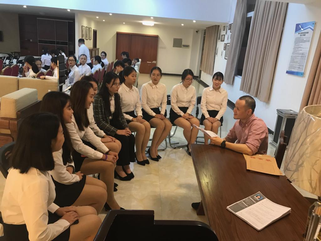 首先,黄永亮总经理介绍了个人的发展生涯以及国际美博会的发展历程、公司前景等,倡导同学们积极提升就业能力,并耐心地为在场学生答疑解惑。
