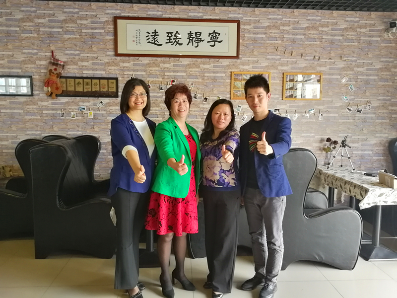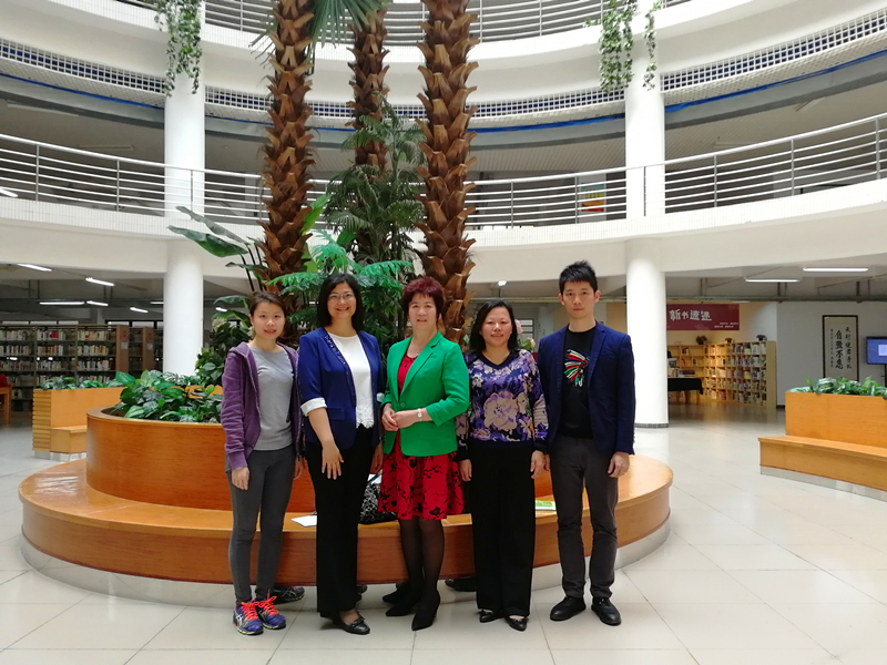 图一:在图书馆合影(左三张秀莲秘书长,右一陈峰副秘书长)