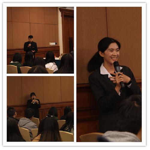 在参观酒店环节,同学们分成两批队伍,由值班经理带领参观酒店内各个经营地点,包括酒店宴会厅、客房、中餐厅、西餐厅等等。参观完毕后,工作人员为大家准备了茶歇,每个人脸上都洋溢着愉悦的微笑。在座谈会环节,同学们谈论参观酒店的感受,提出了自己对酒店感兴趣的问题,企业高管们认真地一一解答。留任企业的2016届东方班代表卢宇婷(商务中心前台)、杨文琪(中餐部秘书)以及2014级东方班实习生代表钟贤清(礼宾部)分别向同学们分享自己在酒店工作、实习的感受和经验。最后,在2015级东方班全体学生合唱的《爱因为在心中》中,见面会圆满结束。