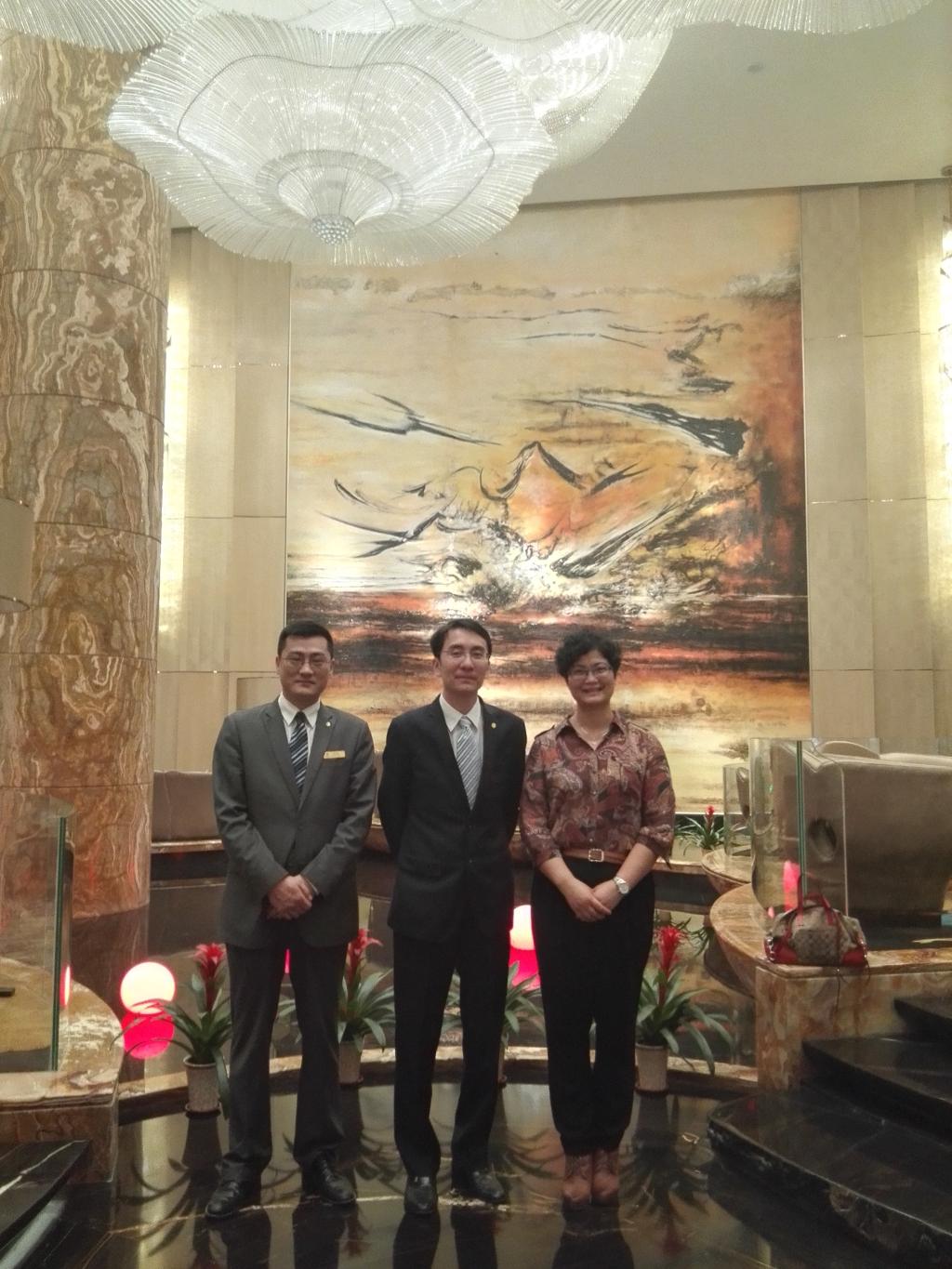 接着,副总经理潘维先生向我系教师介绍了酒店的概况,对已经在酒店实习的学生表示感谢,并对他们的工作表现表示肯定。酒店方邀请我系酒店管理专业、旅游管理专业学生参加2016年春季交易会实习,潘总对学生寄予了厚望,期待他们能够将在专业知识运用到实践岗位上,表现出当代旅游人才的风采,为春交会期间的接待做出贡献。随后,潘总分析了酒店业发展动态,指出当代酒店人才应在道德素质、职业素养、专业技能上都有所建树。他强调,学生的职业道德是人才培养的重点,并对课程设置提出了宝贵意见。谭金凤副主任对潘总的肯定和信任表示感谢,期待校企双方合作能持续良性发展。