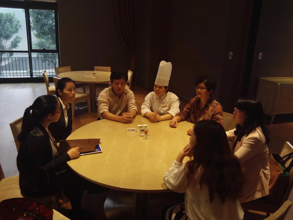4月1日下午,旅游管理系谭金凤副主任带领酒店管理专业群教师前往威珀斯酒店进行人才培养调研。酒店副总经理潘维先生、西餐部经理袁彦斌先生和人力资源部主管詹娟玲女士热情接待了我系教师一行。詹女士首先带领参观了酒店客房、餐厅、大堂、厨房等,并介绍了酒店的创新经营模式。我系2013级烹饪工艺与营养专业学生正在酒店进行毕业实习,酒店方肯定学生的岗位技能水平和积极好学、热情肯干、吃苦耐劳的工作态度,学生也表示在酒店实习受益匪浅,在酒店筹备期的工作让他们获得了很多书本上没有的知识,专业技能在短时间内得到了很大的提高。