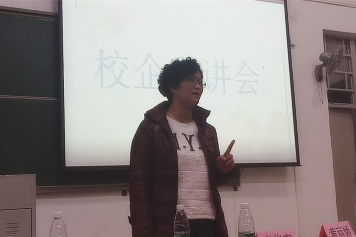 宣讲会在陈丽芳老师的主持下拉开了序幕。会议开始,由胡家夏主任为这次宣讲会致辞。她表达了对远道而来的各企业负责人以及老师同学致以最诚挚的感谢,向同学们详细介绍了我系校企合作情况和发展状况,并勉励同学们用心选择适合自己的校企合作单位,不轻易退缩,勇于面对困难。