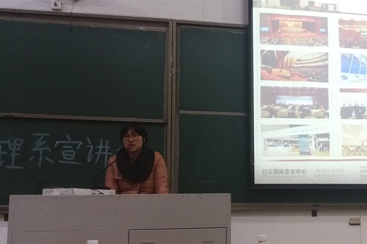 为了更好地完成校企订单班的培养,2015年12月8日晚,旅游管理系于清远校区教学楼101课室召开了2015级酒店管理专业校企宣讲大会。出席本次活动的嘉宾有:广州从化碧水湾温泉度假村的董事长助理张彦浩先生和人事部培训师韩翠文女士、东莞伯顿饮食服务有限公司的运营总经理麦华宇先生和楼面主任黄丽娇女士,以及旅游管理系胡家夏主任、谭金凤副主任、熊汝鑫老师、杨小衡老师、黄隽老师。