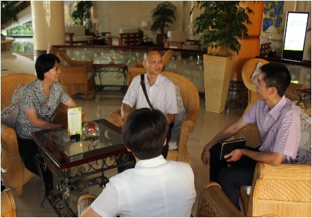 讲座结束后,旅游管理系老师与碧水湾曾董事长等继续洽谈烹饪工艺与营养的校企深度合作事宜。最后老师们看望了7月1日到企业进行1年顶岗实训的13级“碧水湾”班27名同学,了解学生到岗的培训情况、上岗的适应情况以及解答学生的专业疑惑,学生们纷纷兴奋地与老师分享他们在企业中的感悟,特别认可企业的“家”文化及亲情服务的理念,虽然时间很短,但表示获益良多,谭金凤副主任勉励大家以学习的心态认真完成顶岗实训,为自己未来的职业发展奠定基础。