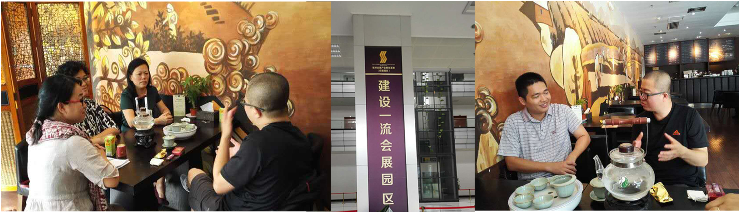 旅游管理系一贯坚持以就业市场为导向,注重学生的实践技能,坚持产学研合作办学的重要基础平台建设。在学院整合资源、优化专业的背景下,系部在已有的实训基础上,为拓展新的校外实训平台,我系领导与教师充分利用暑假休息时间,走访各个合作企业,并建立新的合作关系、努力开拓新的实训平台。2015年8月24日下午,在旅游管理系胡家夏主任的带领下,谭金凤副主任、旅游管理专业主任梁滔滔老师、会展专业主任陈晓华老师一行如约到海珠区琶洲启盛会展产业园调研,受到广州琶洲会展经济促进会主任、常务秘书长吕刚先生的热情接待。
