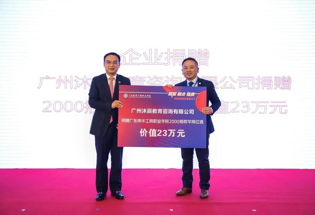 2020年8月,为学院捐赠价值23万的课程实训和技能实训的酒水。2021年11月-2022年1月为酒店管理与数字化运营专业提供技能训练场地,总经理潘家佳为学生提供技能比赛技术指导服务。12月,王晓格同学在沐辰为华南师范大学旅游管理学院酒店、旅游和会展校外实训课堂展示西餐服务。为广东外语外贸大学商务英语学院的20位老师的《西餐文化与葡萄酒品鉴》课程现场展示法式餐饮文化中的重要环节“法式宴会Banquette餐桌文化”。