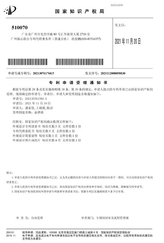 (潘家佳、王晓强、陈洁:品酒桌专利)