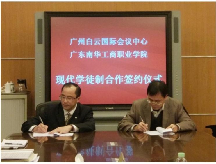 自 2008 年以来,我们与广州白云国际会议中心合作,开设了酒店管理与数字化专业和会展策划与管理专业的订单班。2017 年,与烹饪工艺与营养专业合作开设了现代学徒制班。2018 年,与酒店管理与数字化运营专业合作,开设了省级现代学徒制试点。至今,双方已经合作培养了 684 名学生(学徒),接待了 60 余次国内外高端会议,白云提供的助学金累计达 8178000 元。