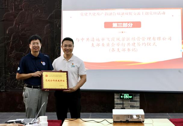 最后,两个支部分别与飞霞山支部进行了主题党日活动,围绕着双方共同关心的产教融合项目进行了深入对接和交流。此次活动不仅促进了校企之间的合作与交流,也为清远旅游事业的未来发展注入了新的活力和动力。