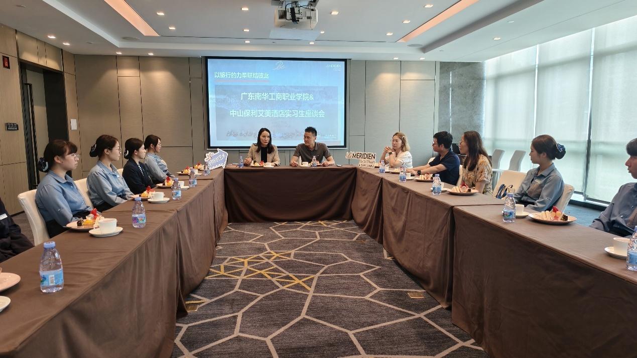 中山保利艾美酒店是万豪酒店集团旗下高端商务型酒店。校企双方围绕酒店行业的最新发展趋势、企业对人才的需求变化以及校企合作模式创新等议题展开了讨论。学校老师们与实习学生还开展座谈会,了解学生在岗学习及生活状况,耐心倾听并解答学生们提出的问题与疑虑。实习生们对实习单位总体反馈满意。