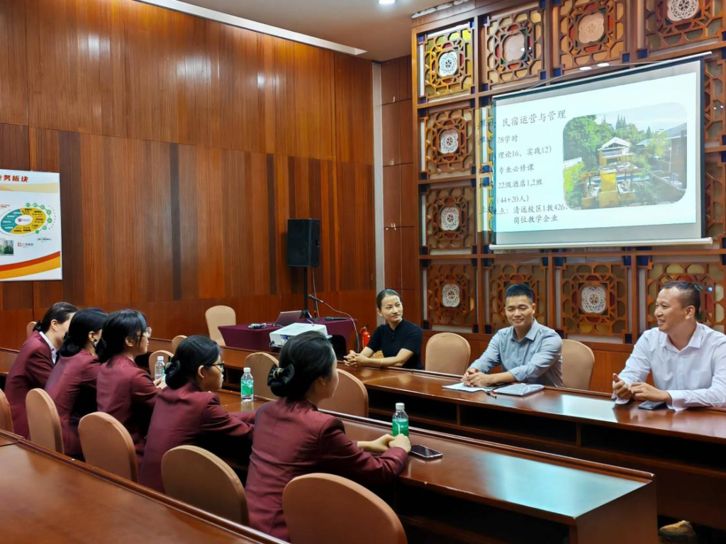 梁滔滔一行与相关订单班合作企业就订单班教学要求、专业建设和产教融合等方面展开交流,校企双方围绕文旅服务行业的最新发展趋势、企业对人才的需求变化以及校企合作模式创新等议题展开了讨论。同时,学院教师与订单班学生开展座谈会,了解学习、生活状况,跟进学生的在岗教学情况,针对服务岗位的特点,专任教师现场为在岗实践的学生进行专题授课。