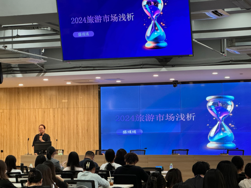 会后,盛彧彧为旅游管理专业师生带来主题为“2024旅游市场浅析”的讲座,为与会者提供了对旅游市场最新动态的深入分析和见解。