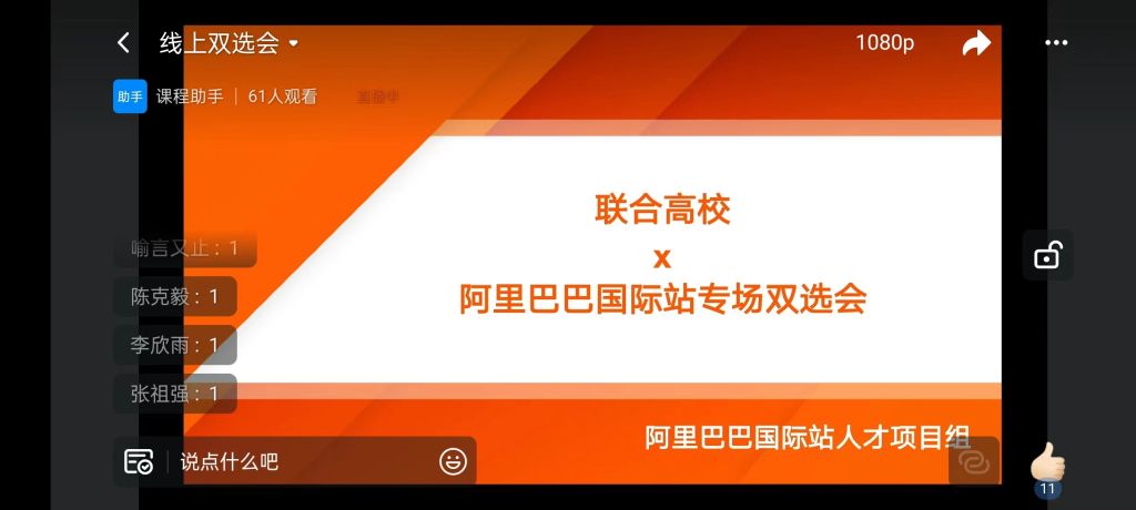 为了实现外院2024届毕业生“人岗精准匹配”的高品质就业,2023年12月26日下午,外语外贸学院联合阿里巴巴(中国)网络技术有限公司成功举办阿里巴巴国际站(跨境电商)线上专场双选会。此次人才双选会通过钉钉线上直播的形式进行,共吸引来自广州、深圳等珠三角地区的10家阿里巴巴国际站金牌优质商家参加我院的专场双选会,本次双选会招聘企业共提供外贸业务员、外贸运营助理、跨境电商运营、外贸平台运营跟单等超过50个招聘岗位。我院国际经济与贸易、商务英语、国际商务、关务与外贸服务、现代物流管理、应用英语、商务日语等专业近100名毕业生参加了双选会。