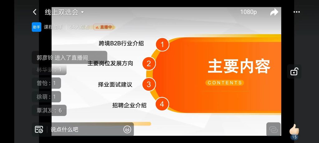 活动当天,阿里巴巴国际站负责人率先介绍了我省跨境电商行业总体情况和主要岗位发展方向,并向应聘毕业生依次介绍10家企业具体的招聘信息。集中宣讲结束后,各企业负责人在直播间内,从各自的企业文化、企业愿景、用人需求和岗位要求等方面进行了详细介绍,感兴趣的同学扫码进入到对应企业群内自主交流并投递简历。同学们纷纷结合自身求职意向和择业需求,积极投递简历,并与企业HR进行深入交流,进一步了解用人单位的经营范围、招聘需求、薪酬体系等情况。双选会当天,外院学生共计投出93份简历。