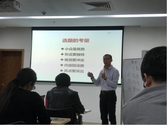 课堂中,汪博士从参赛准则:形胜于质、标准为王、以不变应万变、高于现实,信息化方向是移动学习,教学大赛胜出靠活动设计等方面分析了参加全国职业院校教学能力大赛应该注意的事项及技巧。强调大赛要以实际课堂为基础而又要高于实际课堂,同时参赛教师要注重选题,挖掘亮点,用技术解决问题和大赛答辩技巧。