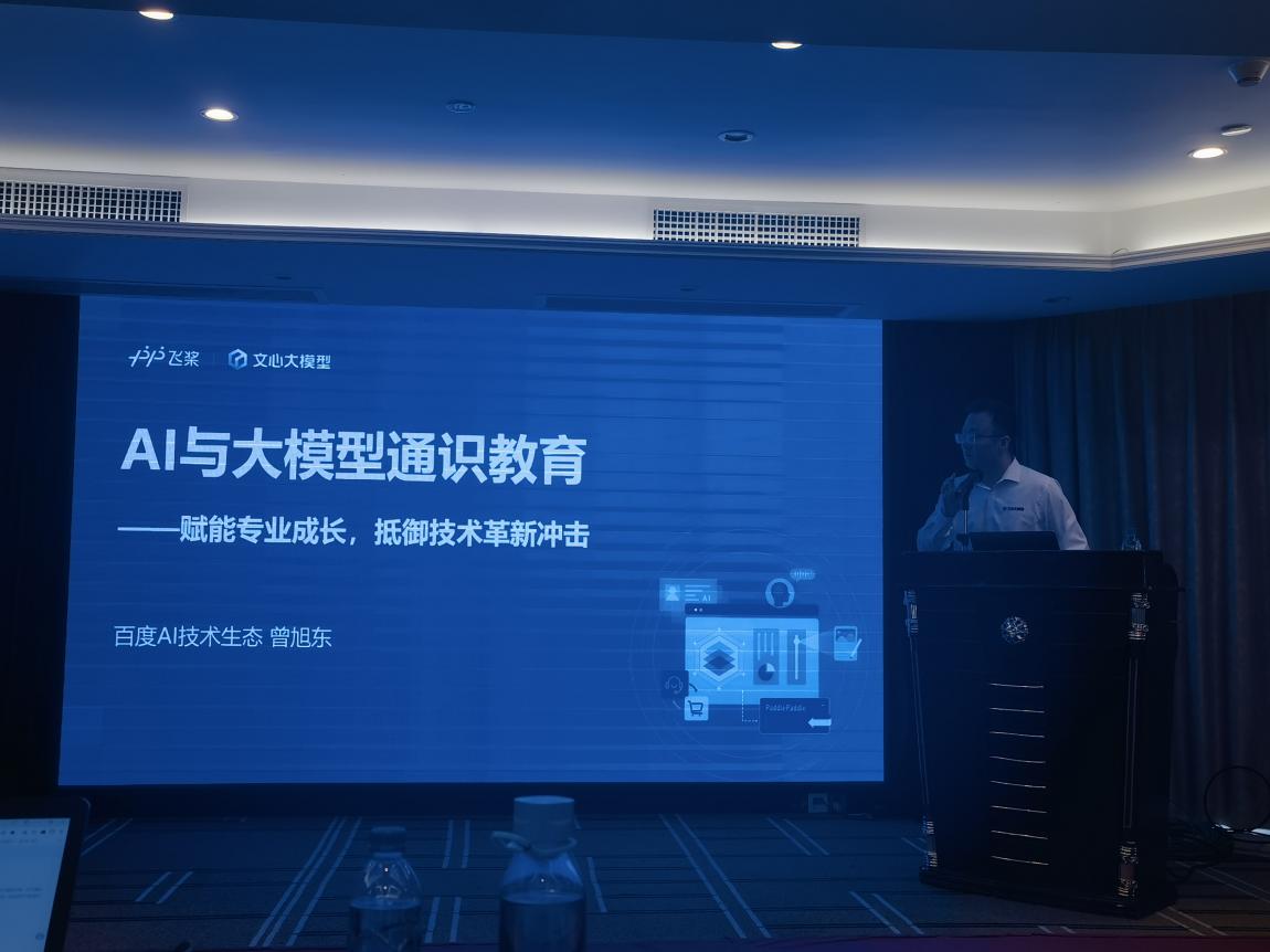 百度AI技术生态华南区总监曾旭东、百度AI技术生态高级产品运营经理黄凯,一同围绕“AI与大模型通识教育及赋能教育创新实践”主题,从AI技术的最新发展趋势、大模型在通识教育中的应用,以及如何通过AI技术赋能教育创新等多个角度,为参会教师提供了丰富的理论支撑和实践指导。