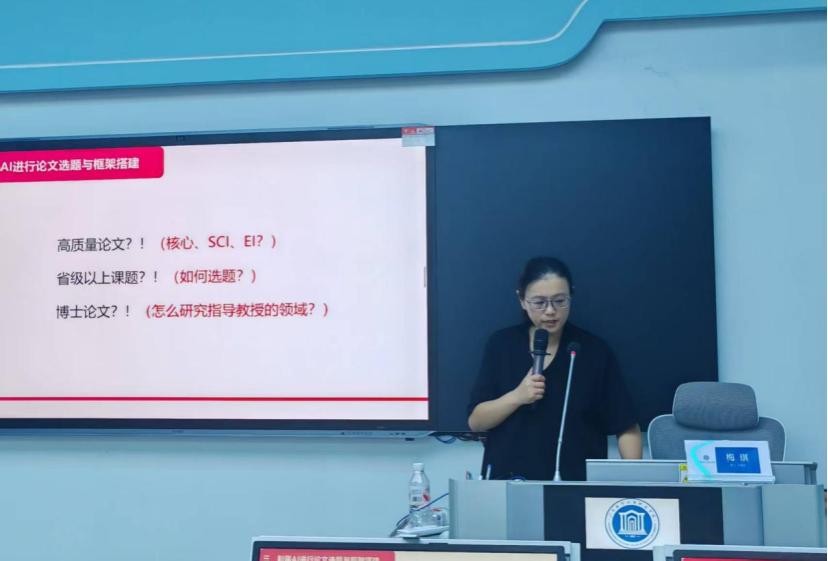 梅琪详细讲解了AI智能体的基本概念与操作技巧,重点探讨了AI技术在个性化学习支持、教学资源开发及课堂互动增强等方面的具体应用路径。此外,针对教师们的科研需求,她还分享了AI在文献梳理、论文结构的搭建等方面的辅助功能,为提升科研工作效率提供了新思路。