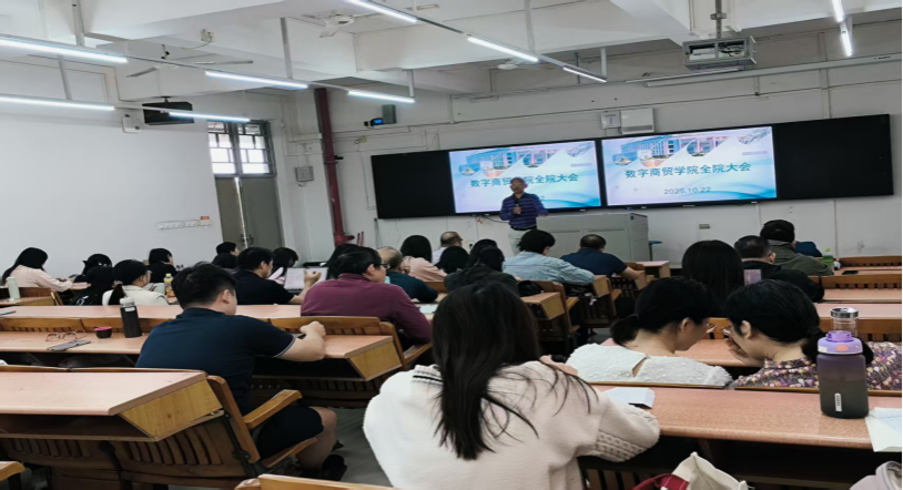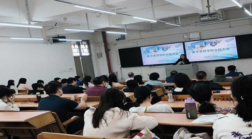 10月22日,数字商贸学院在第一教学楼405召开全院大会暨资产管理制度培训会,围绕学院重点工作部署和规范资产管理开展专题学习。院长李新、党总支部书记刘爱玲、常务副院长杨鹏强及数字商贸学院全体教职工参会。