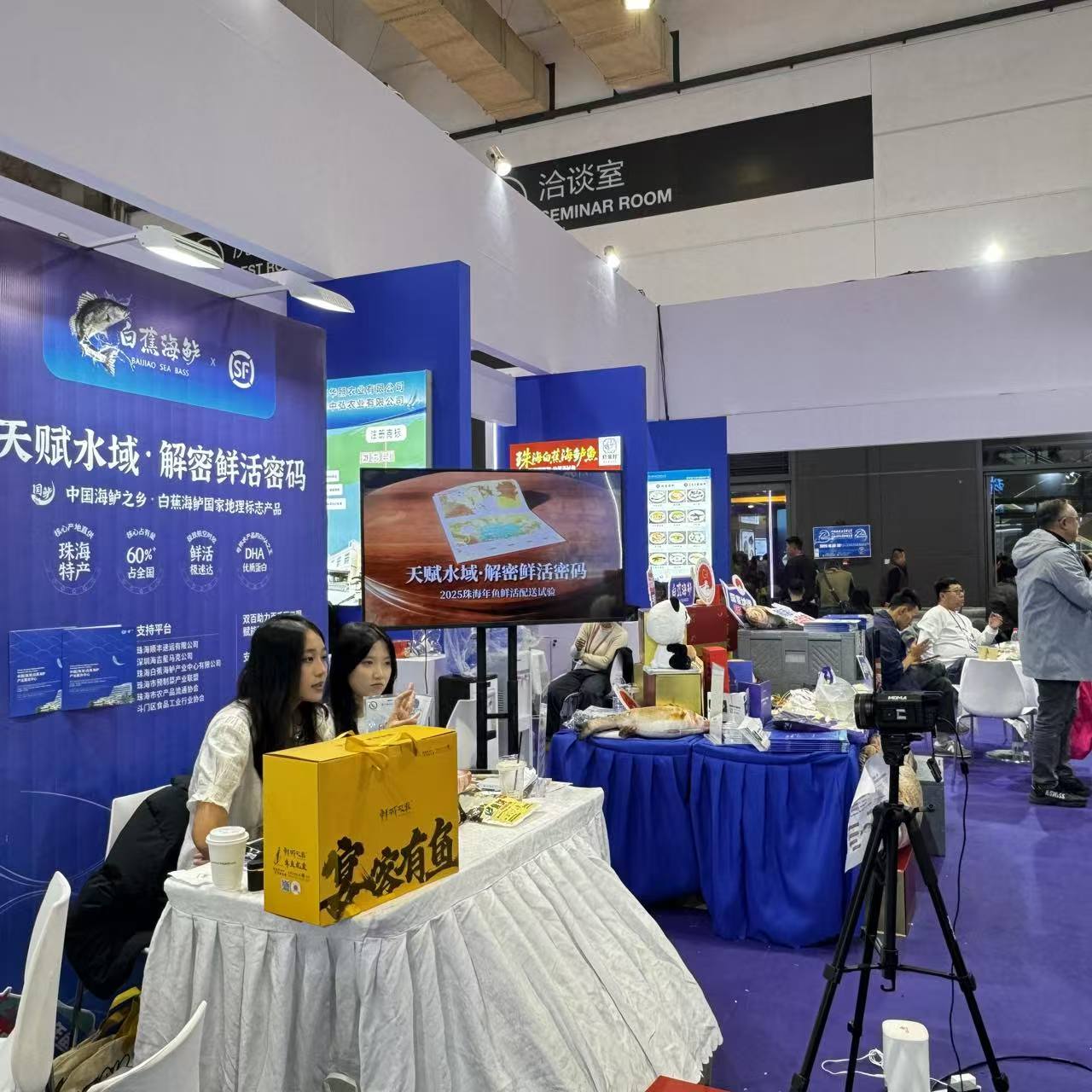 在展会现场,由我校数字商贸学院电子商务、关务与外贸服务等专业师生组成的直播团队,将课堂所学与产业实践紧密结合,秉持“让珠海优质水产走向全国”的使命,在专属直播区内生动讲解国家地理标志产品“白蕉海鲈”的生态养殖环境、预制菜加工工艺及多种烹饪方式。通过实时互动与产品展示,他们精准传递“白蕉海鲈”的品牌价值,充分展现了学生的直播运营、产品推介与团队协作能力。