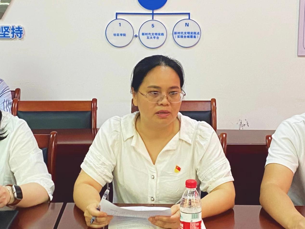 敏捷社区党支部书记刘卫怡同志领学《条例》第九章“对违反群众纪律行为的处分”,她提到作为基层党员干部必须要以时刻人民发展为中心,把人民利益放在首位,严格遵守党的纪律,做到廉洁自律、公私分明。