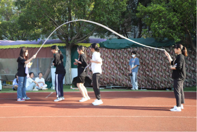 在“‘绳’动飞扬”中,似彩蝶飞舞般的跳绳在同学们的手中翩翩起舞,让春日中更添了几分色彩。即便“彩蝶”脱手而出,也丝毫不影响参赛选手的积极热情,他们飞快地拾起落在地上的“彩蝶”,便继续你争我赶,尽显青春活力。在比赛中同学们不断突破自己,每个队伍都尽显比学赶帮超的良好氛围。