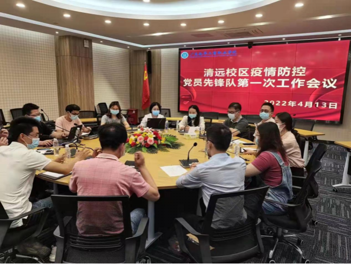 在4月12日接到学校党委关于成立“党员先锋队”的通知后,各学院积极招募先锋队成员。清远“党员先锋队”4位队长于20:30~23:00连夜召开会议,商讨如何更好地发挥先锋队的作用,明确党员先锋岗位设置及职责内容,并确定了各学院主要任务。