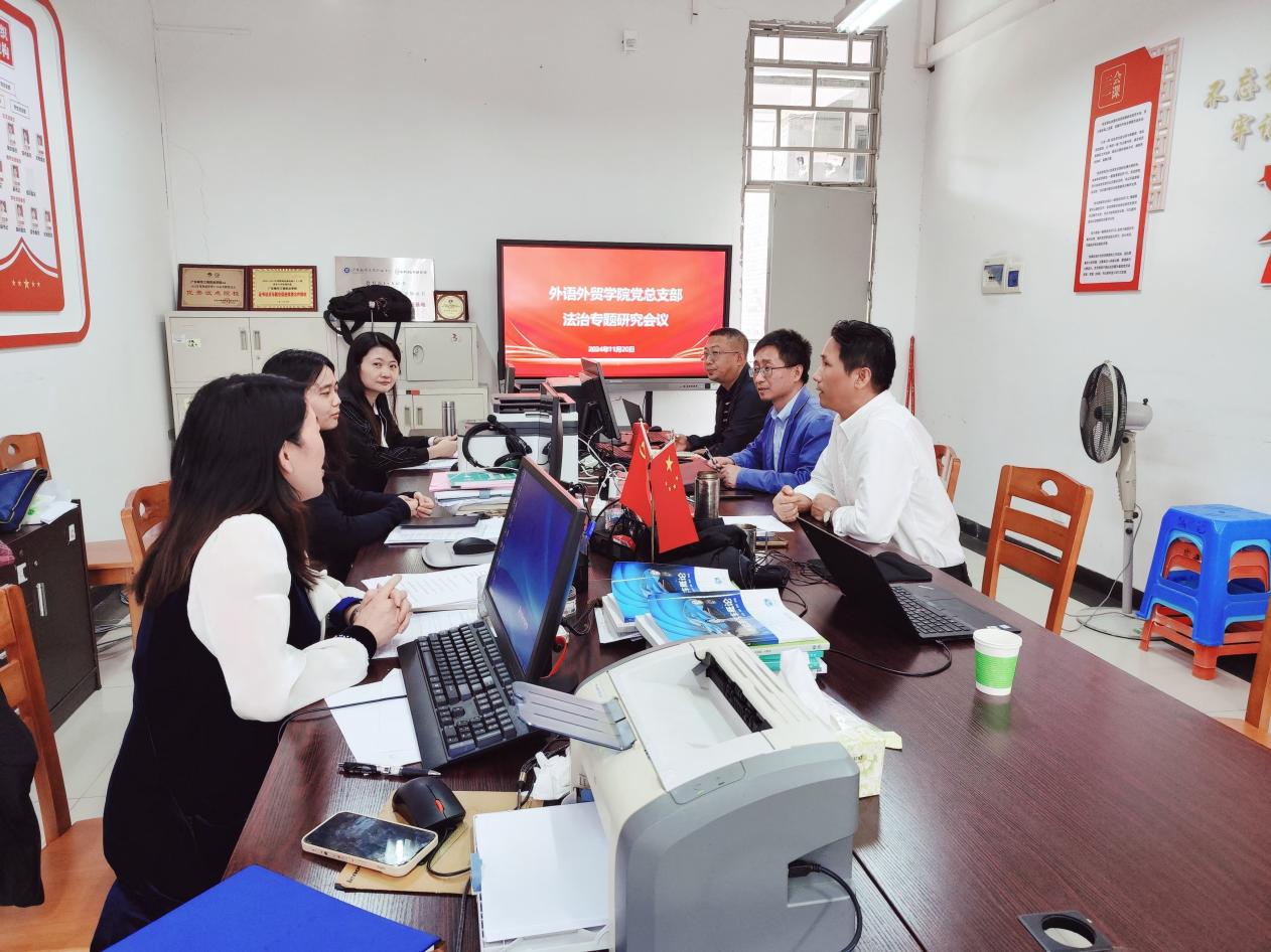 11月20日,外语外贸学院(下称“外院”)党总支部法治工作研究会议在清远校区教学楼207办公室顺利召开,围绕法治工作深入研讨,以期提升学院法治建设水平,推动依法治院工作取得新成效。