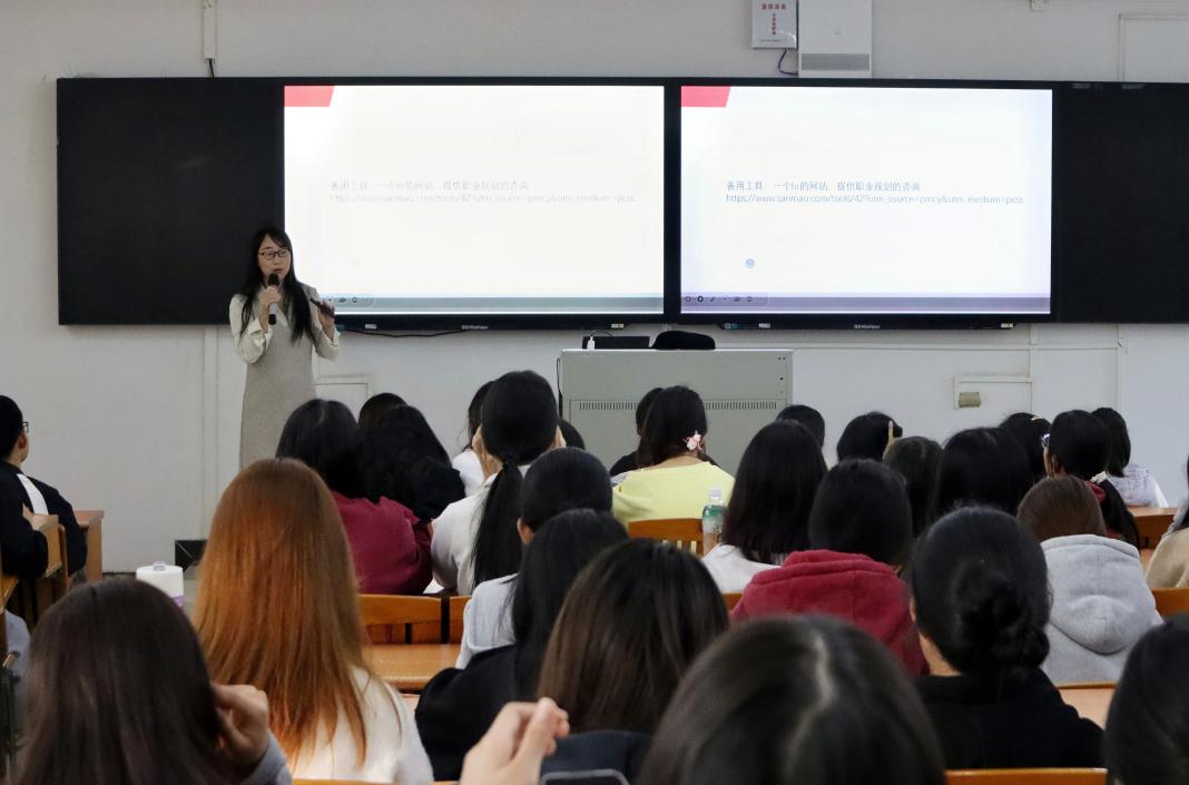 字节跳动有限公司人事经理何珊凭借其丰富的人力资源经验和专业知识,深入浅出地讲解了简历在求职过程中的重要性。同时,她从供需分析、简历制作、渠道通道、初入职场体验等多方面与学生分享她在职场上对于简历制作的见解与心得。此外,何珊详细讲解了简历的各个组成部分,从个人信息的精准表述到教育背景的合理呈现,从工作经历的有效提炼到技能特长的突出展示,每一个环节都进行了细致入微的讲解。她提到:“简历是求职者的敲门砖,一份优秀的简历能够在瞬间抓住用人单位的眼球,为成功就业赢得宝贵机会。”