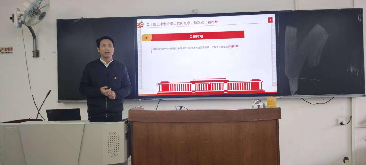 教师党支部书记王云主持学习了第一议题,即“习近平总书记在中央经济工作会议上的重要讲话精神”,并进行了党课讲授。党课的主题为“二十届三中全会精神学习分享”。王云紧密联系当前国内外形势,对全会精神核心要义进行深入的解读,在新时代背景下加强党的建设和推进高质量发展的重要性,为全体党员教师明确学习方向和实践路径。