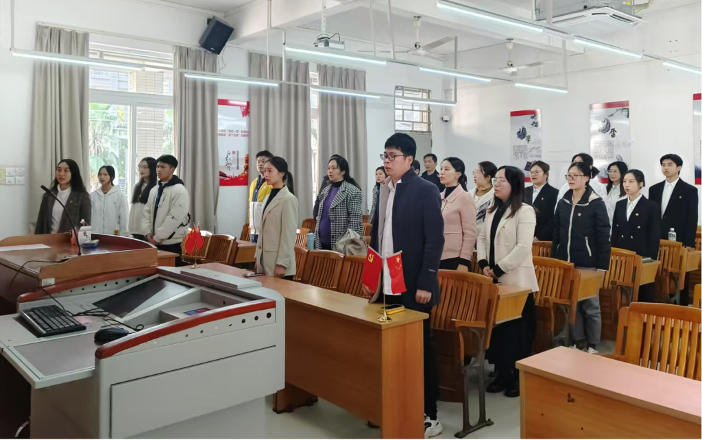 12月24日,外语外贸学院(下称“外院”)学生党支部在清远校区第一教学楼212举行党员大会,讨论接收陈欣桐等八名同志转为预备党员等事宜,会议由学生党支部组织委员曾晶主持。