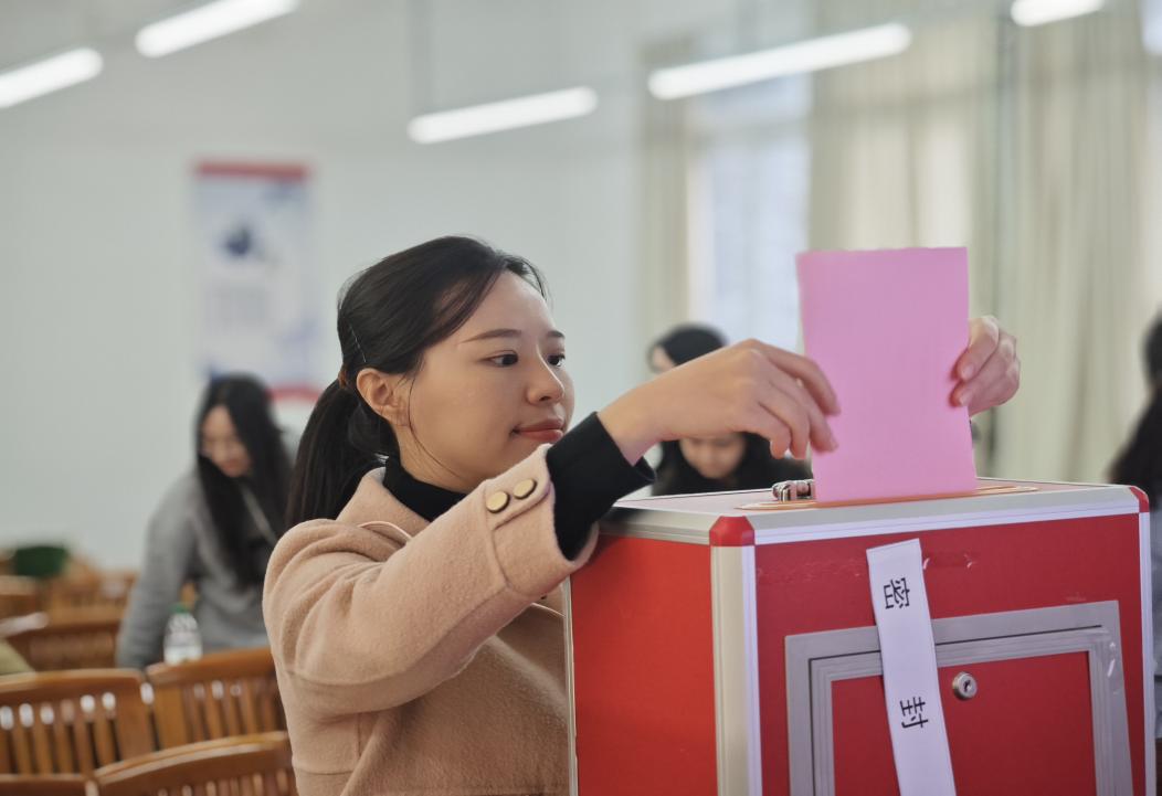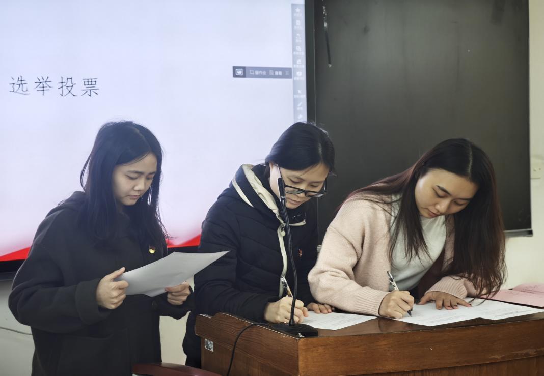 大会审议并通过《选举办法(草案)》、监票人和计票人人员名单、委员候选人建议名单。唐嘉敏同志在会上介绍学生党支部的候补委员基本情况。与会的党员们以无记名投票的方式,行使自己的民主权利。在监票人、计票人的严格监督和认真统计下,选举过程有条不紊地进行,最终大会通过差额选举的方式选举产生了学生党支部的候补委员。