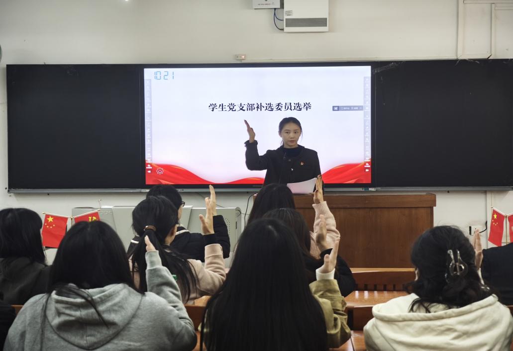 投票结束后,唐嘉敏公布当选增补委员名单和学生党支部委员最新的分工情况。学生党支部委员补选过程公开透明,秩序井然,充分发扬了党内民主,保障每位党员的选举权和被选举权。