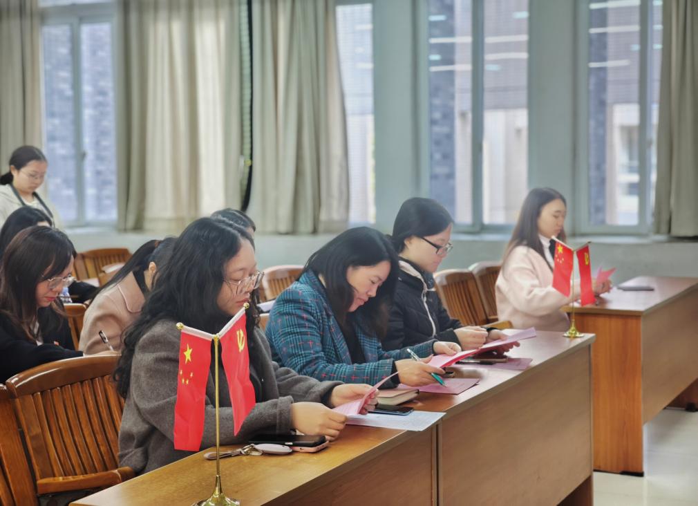 大会在嘹亮的国歌中拉开帷幕。学生党支部组织委员曾晶同志领学《学习习近平总书记2025年新年贺词》。张佩婷同志结合自身学习和工作点滴,分享学习心得。罗爱梅同志领学《学习中共广东省委十三届六次全会暨省委经济工作会议精神》;宋佳嘉同志领学《党政领导干部考核工作条例》。