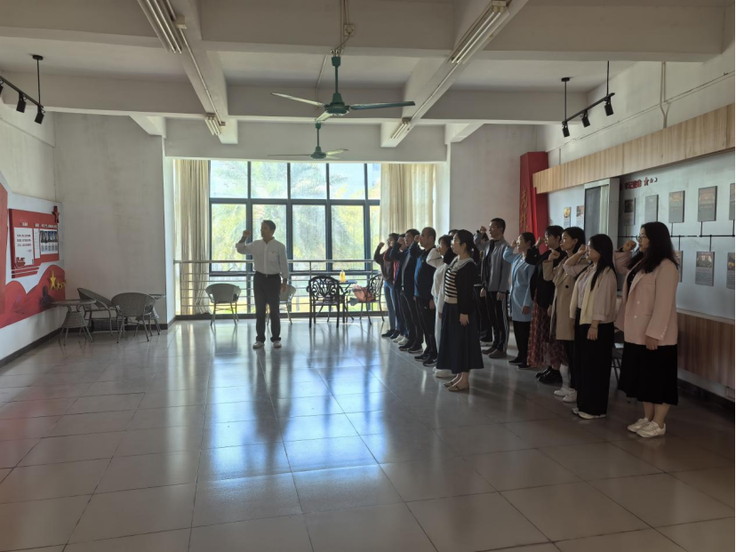 在重温入党誓词环节,全体党员面对鲜红党旗庄严宣誓。邓永红、龚琳玲、詹小丽、黄伟菲结合教学、科研、育人岗位,畅谈“为何出发、如何前行”,表示要把对党忠诚写在行动上,把立德树人落在细节处,以更加昂扬的斗志迎接“十五五”新赛程。
