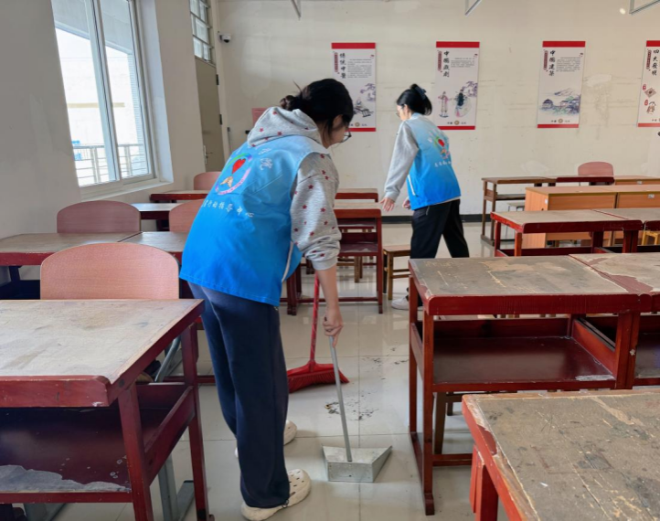 校园环境整治行动在教学区与体育活动区同步开展。学生党支部书记龙俏颖表示,支部党员和入党积极分子要充分发挥先锋模范作用,聚焦教室边角、楼道拐角、垃圾桶周边等卫生死角,确保清理工作全面覆盖、不留盲区,切实达成环境整治实效。