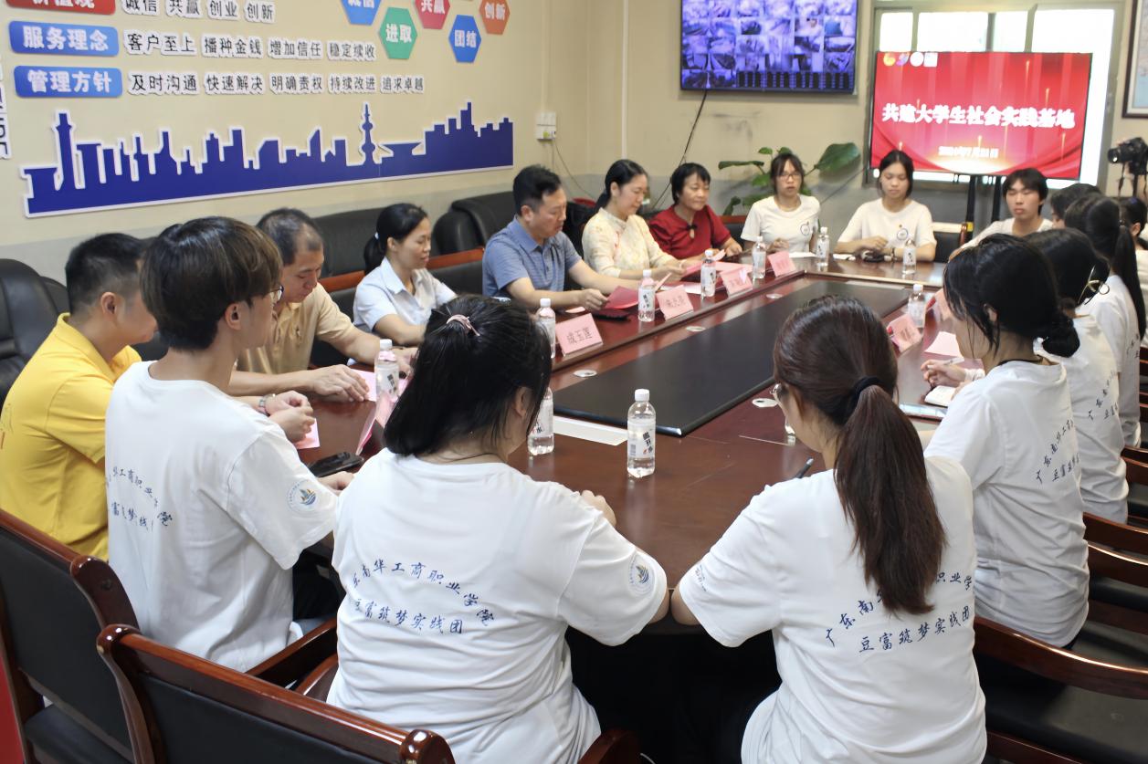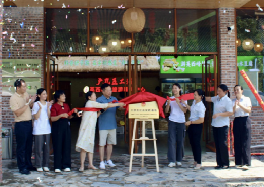 7月21日,广东南华工商职业学院外语外贸学院(下称“南华外院”)联合清远市广九食品有限公司(下称“广九食品”)举行“携手育人双赋能,助力‘百千万工程’”主题座谈交流会暨“大学生社会实践基地”揭牌仪式。英德市九龙镇副镇长朱光亮,广东省劳动模范、广东省三八红旗手、清远市农业企业家协会党支部书记兼秘书长、清远市农业品牌促进会执行秘书长陈晓懿,广九食品创始人成玉莲,南华外院团委副书记唐嘉敏一同揭牌。