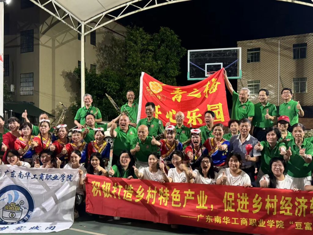 晚上,豆“富”筑梦实践团与“青之梅”在英德市浛洸镇鱼咀村文化广场同台合唱红歌,并进行实况直播,唱响助农主旋律,传播正能量,助推更多清远农产品走进百姓的餐桌。