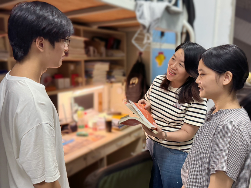 图1 学院党总支部副书记刘爱玲、辅导员张佩婷关心学生的学习生活情况