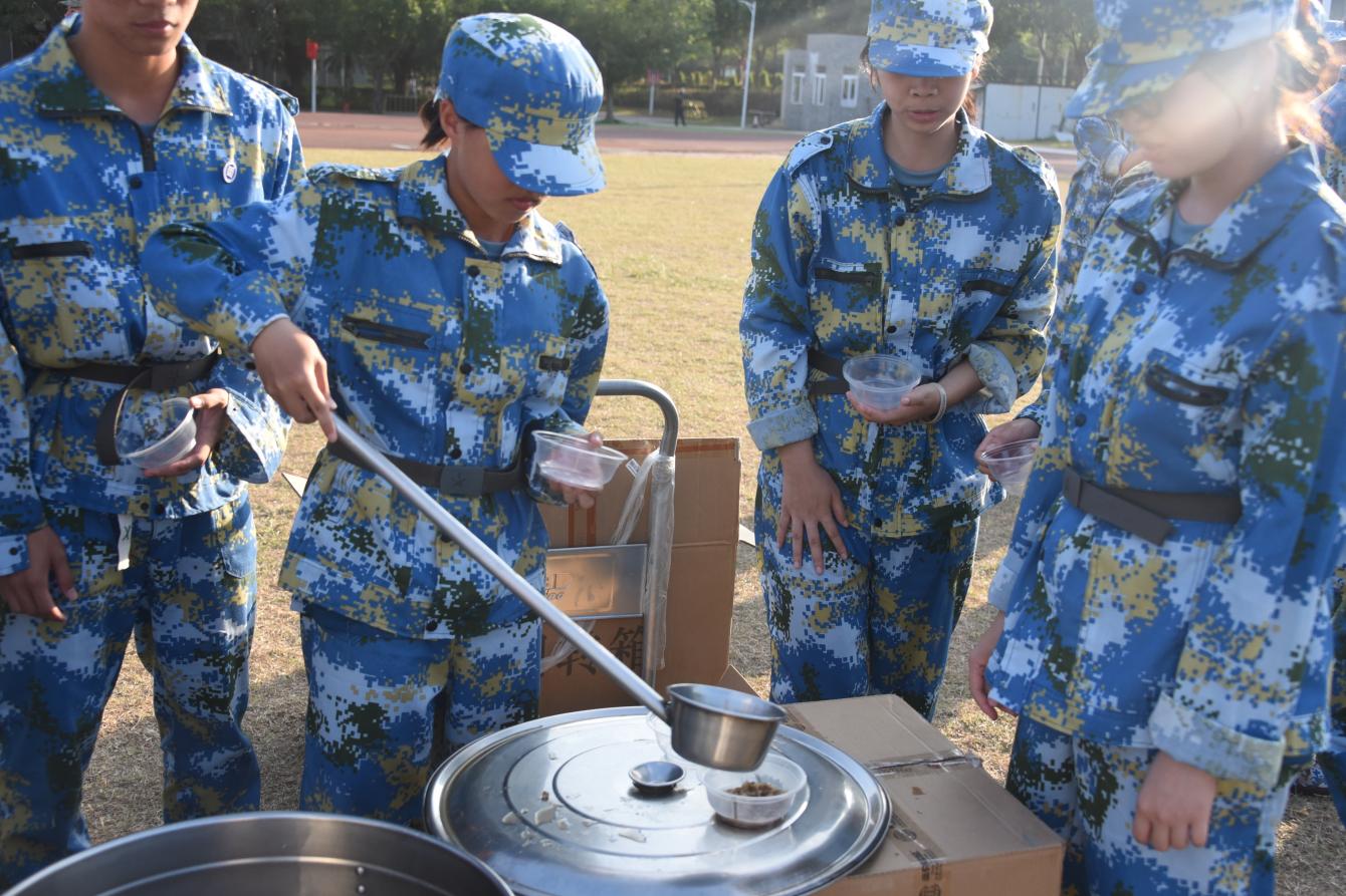 此外,外院还在活动现场设立免费的糖水供应点,为炎炎烈日下辛苦训练的新生送上清热解暑的糖水。糖水递送间,笑声与感谢交织,构成了一幅动人的画面。