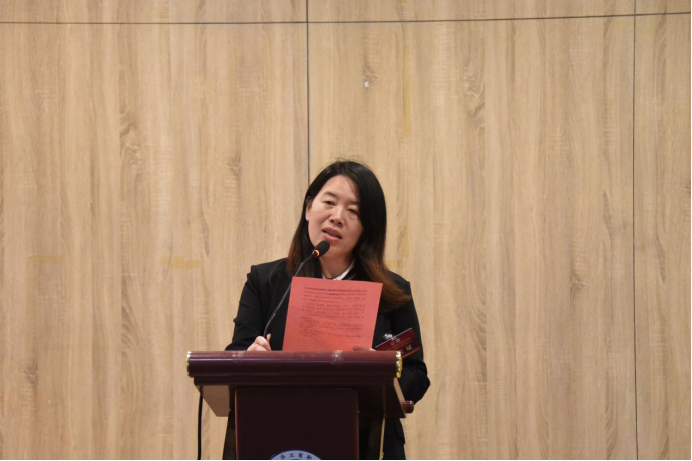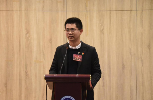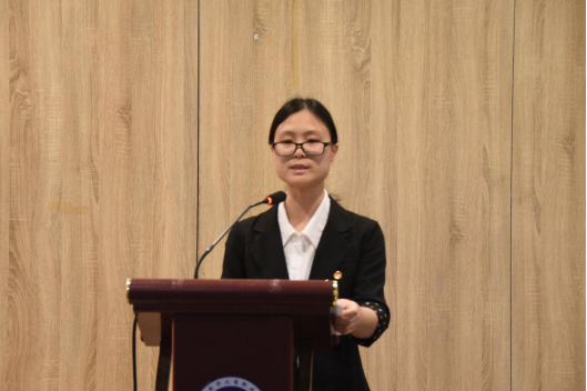 外院团委书记洪柔冰作团委工作报告。她总结了三年来工作取得的主要成绩,并表示学院团委的工作重心是强化思想政治引领,提升团学组织活力,并深入开展了思想政治教育、创新创业及校园文化等多项活动。她号召全体团员自信自强、守正创新,踔厉奋发、勇毅前行,共同开创外院共青团工作的崭新局面。
